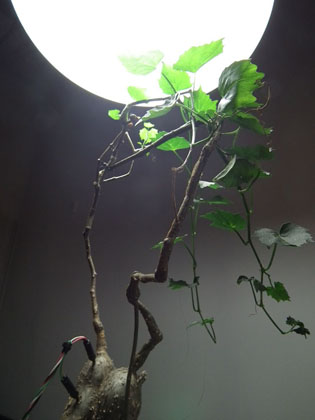 Plantes (Cyphostemma sp.), lampe à LED de croissance, montage électronique, ordinateur, capteurs de montée de sève dit de Granier TDP