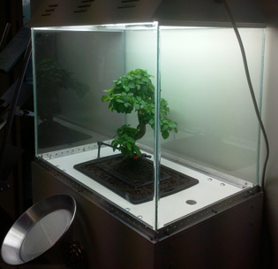Cette installation présente un travail sur l'idée du phytotron, dispositif scientifique permettant l'expérimentation dans un environnement contrôlé. La plante y génère une composition sonore suivant son propre rythme biologique.