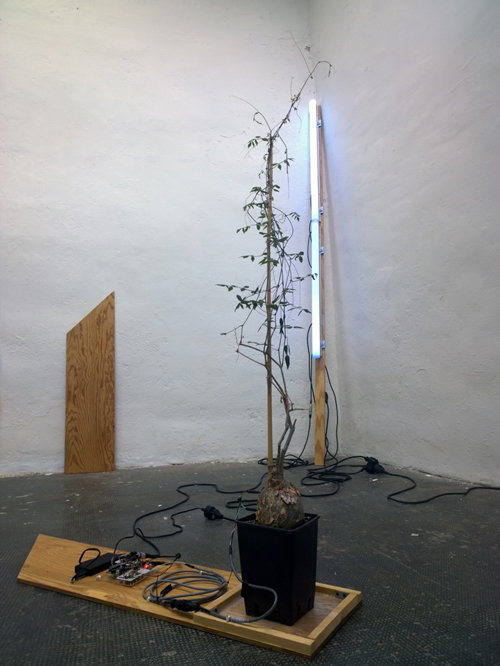L'installation lumineuse, Variation pour montée de sève se construit autour du rythme physiologique d'une plante, sur le néon notamment, nous assistons à la progression de la sève dans le végétal, une vigne sud-africaine : un Cyphostemma