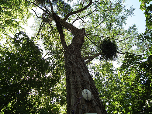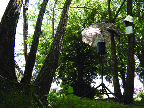 Vue du capteur de montée de sève. Concerto pour montée de sève, parc du Château Ephémère - Fabrique sonore et numérique - à Carrière-sous-Poissy. LAAB avec Nicolas Bralet, François-David Collin et Sabrina Issa. juin, 2017.