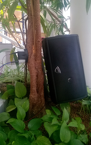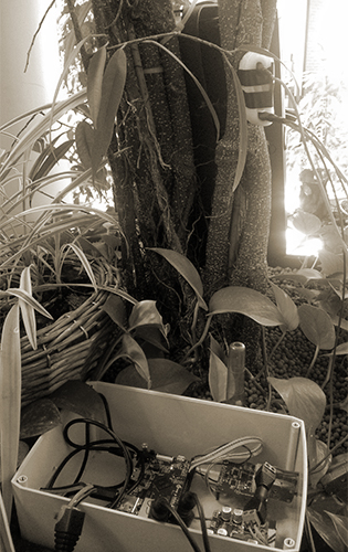 Concerto pour flux de sève, détail de l'installation, avec Nicolas Bralet, François-David Collin et Sabrina Issa. Curiositas Hors-les-murs, Médiathèque François Mitterand, Les Ulis, avril 2017.