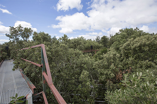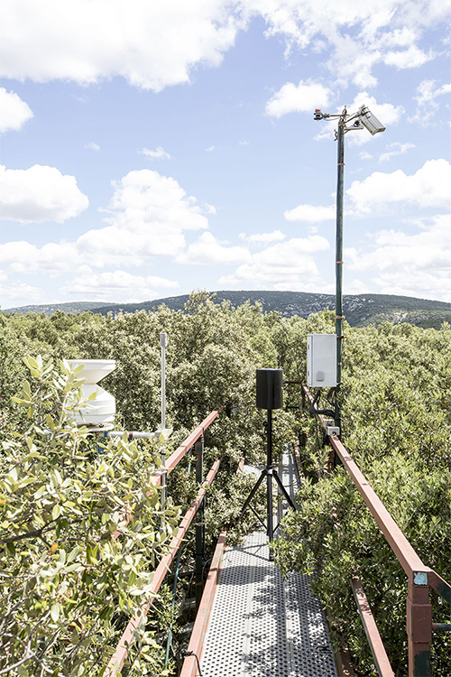 La forêt domaniale de Puéchabon étudiée depuis 1984 par les chercheurs du CEFE-CNRS (Centre d’Ecologie Fonctionnelle et Evolutive à Montpellier). Afin de répondre aux questions liées aux changements climatiques et leurs impacts sur l’écosystème forestier, le site est équipé de différents dispositifs qui permettent l’étude expérimentale de la sécheresse à différentes échelles de temps.