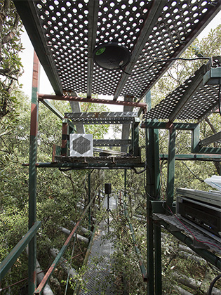 Détail, dispositif de sècheresse controlée, Site expérimental CEFE - CNRS de la Forêt de Puéchabon, photo Sabrina Issa, 2016.