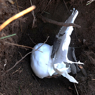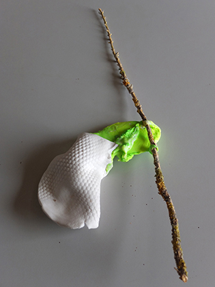 Pièce issue de la série, Hydres céramiques, polymère, bois, minéraux, dimensions variables, Samuel Aligand et Lydie Regnier, résidence de recherche et de création, le LAAB en collectif augmenté au Domaine des Boissets, Lozère, 2020.