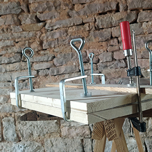 Vue d'atelier, Nicolas Bralet, fabrication de leurres, résidence de recherche et de création, le LAAB en collectif augmenté au Domaine des Boissets, Lozère, 2020.